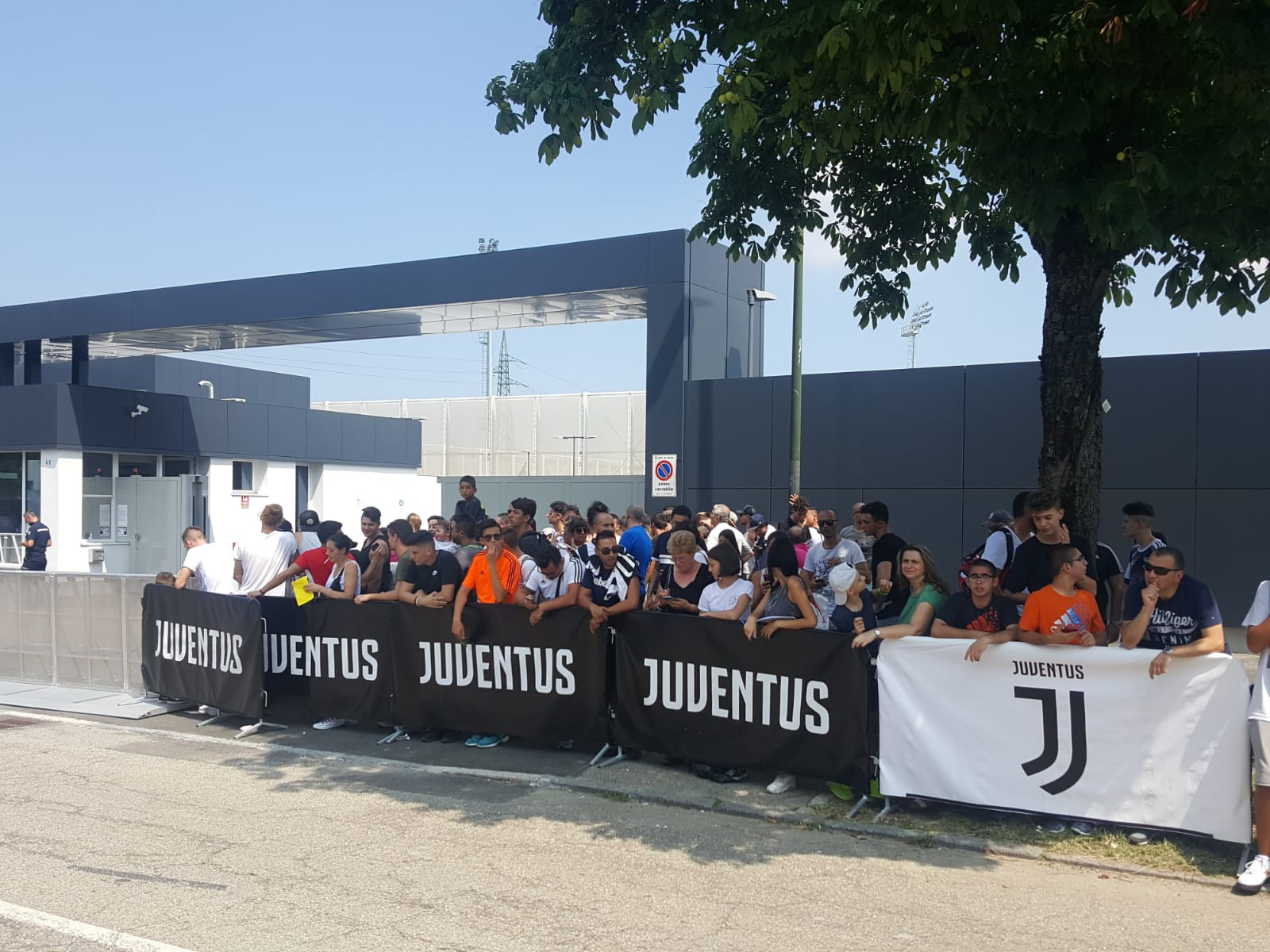 Circa 200 persone ad attenderlo, incuranti del sole e delle alternative che l’estate propone. Tutti all’esterno della Continassa in attesa, per l’ennesima volta, di Cristiano Ronaldo. Uno degli uomini più attesi del momento.