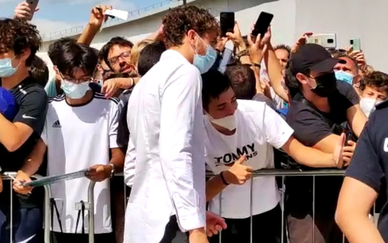 08.40 – Il numero dei tifosi continua ad aumentare: già una cinquantina di presenti alle porte del J Medical: tra mascherine e magliette bianconere, spunta anche una casacca della Nazionale. È quella “bianca” con cui Locatelli ha segnato una doppietta alla Svizzera negli ultimi Europei.
