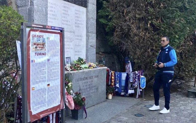 Non è la prima volta che Maurizio Sarri voglia celebrare il Grande Torino. Non sarà, probabilmente, nemmeno l’ultima. Ma la cosa che stupisce è che questa volta, a Superga, davanti alla lapide commemorativa del disastro aereo che coinvolse i cosiddetti “Invincibili”, l’allenatore del Napoli non sia andato alla vigilia di una partita del Toro, bensì a quella della partitissima, che potrebbe valere una enorme fetta di scudetto, contro la Juventus. Proprio così: ieri pomeriggio, con Hamsik e compagni arrivati a Torino, Sarri, da solo, ha voluto recarsi nuovamente sul colle di Superga, per andare a omaggiare Valentino Mazzola e tutta quella grandissima squadra, la cui vita venne stroncata dall’incidente aereo di quel 4 maggio 1949. Già più volte l’allenatore ha voluto compiere questo semplice ma particolarmente simbolico gesto. Che va oltre ogni possibile rivalità calcistica: un omaggio alla storia del calcio, anzi, che accomuna tutti.