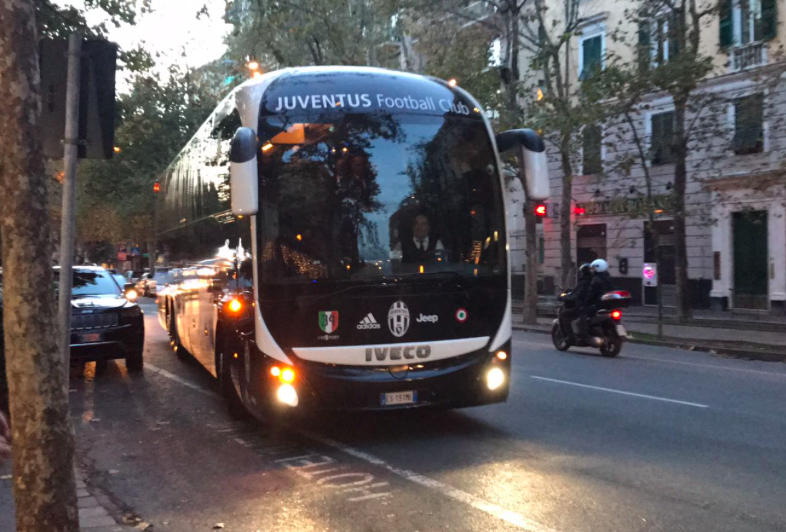 Dopo la vittoria di una settimana fa col Pescara e il bel successo in rimonta di martedì in Champions League, Juventus a caccia dell’ennesima prova di forza domani pomeriggio al Ferraris in casa del Genoa. Terminato l’allenamento a Vinovo, squadra subito in viaggio direzione Genova, con la buona notizia Gonzalo Higuin sul pullman assieme ai compagni. “È a disposizione – così Allegri in conferenza – vedremo se dall’inizio o a gara in corso”. Pullman che pochi minuti fa ha raggiunto l’Hotel Melià nel centro di Genova, sede del ritiro bianconero. Ecco tutte le immagini dell’arrivo di Buffon e compagni.