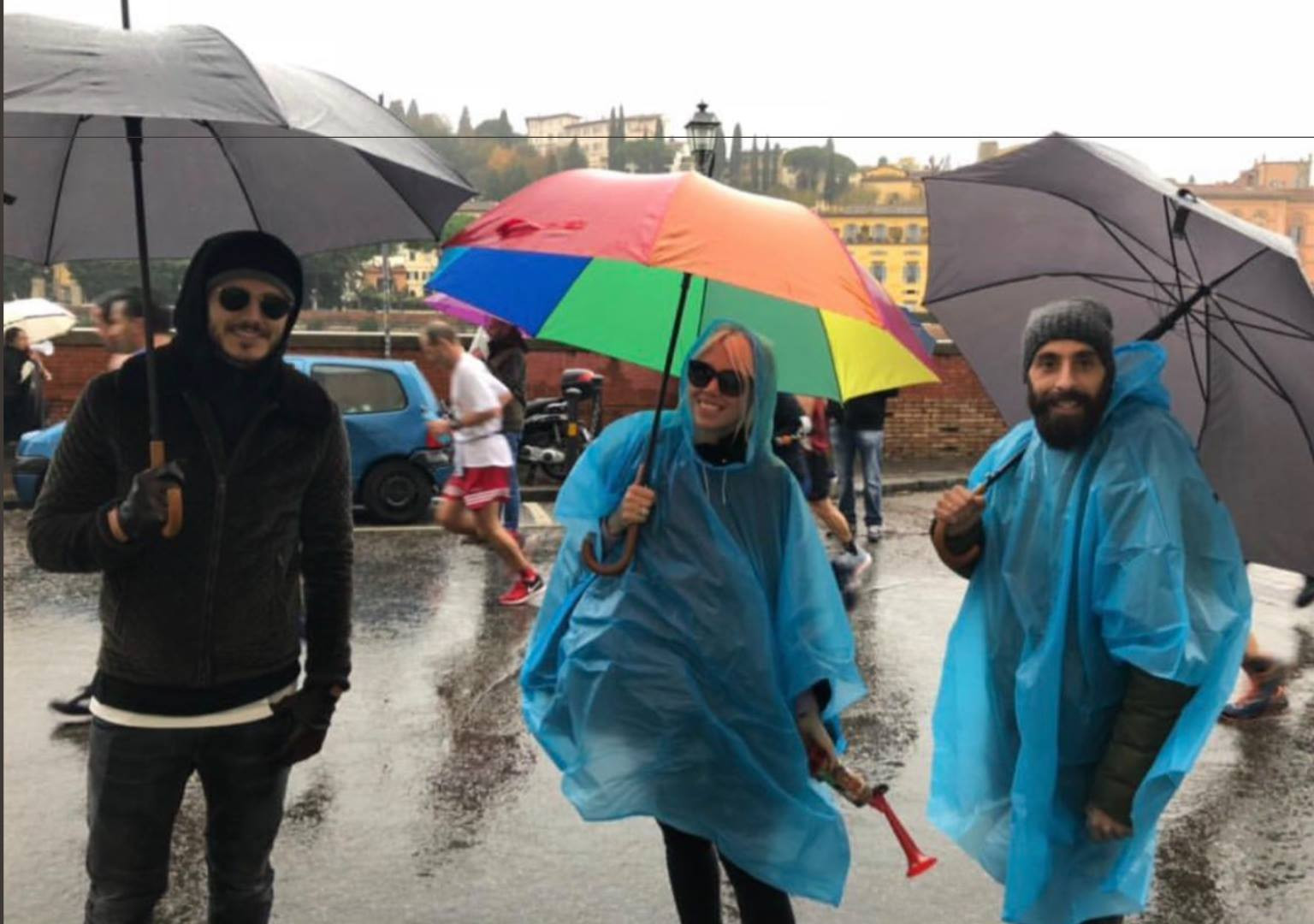 Più veloci anche… della pioggia. La Fiorentina vola a Roma per sfidare la Lazio, Firenze si… ‘ferma’ per la maratona. O meglio, si muove. In tantissimi (oltre 300 in più rispetto all’ultima edizione) hanno deciso di prendere parte alla 34esima edizione dell’Asics Firenze Marathon: persone comuni ma anche star, con un unico comun denominatore: la passione per le sfide. Da Alex Zanardi fino alla moglie di… Borja Valerio. Già, anche Rocìo Rodriguez – che in passato non ha mai risparmiato messaggi d’amore per la città di Firenze – ha deciso di indossare il completino rosa, le scarpette da ginnastica e dilettarsi nell’impresa. 42km di fatica, con il sostegno di tre tifosi d’eccezione: il marito Borja, Wanda Nara e Maurito Icardi. Il tutto testimoniato minuto per minuto dalla showgirl argentina. A partire dalla sveglia impostata alle 6:00 per non rischiare di fare tardi. Treno e… arrivo a Firenze. Con la pioggia ad attendere il capitano nerazzurro. Ma anche tanto, tanto affetto. Trombetta in mano, voce forte e via. “Vamos Rooo!” è il grido di incoraggiamento per lady Valero. I podisti lo riconosco, troppo forte la tentazione di abbracciare Maurito. Un’occasione da prendere… di corsa. Qualcuno rallenta per un abbraccio veloce, altri gli urlano complimenti ed elogi. Un altro si ferma, si inginocchia e gli bacia la mano. “Una foto, una foto”, insiste guardando Wanda quanto mai pronta ad immortalare ogni aspetto. Icardi sorride, la maratona va avanti. Con tre tifosi d’eccezione e Rocìo dritta verso il traguardo.