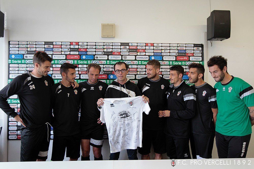 Ricordate Paolo Gagnone? E’ il tifoso ‘solitario’ che domenica scorsa al San Nicola era l’unico supporter della Pro Vercelli presente nel settore ospiti. “Quasi mai mi ritrovo solo…“, aveva raccontato ai microfoni di GianlucaDiMarzio.com proprio nel giorno di quella trasferta a Bari. Oggi Paolo è stato ricevuto dalla Pro Vercelli e nella sala stampa del ‘Piola’ è stato accolto da una delegazione di giocatori del club che l’hanno ringraziato regalandogli una maglia ufficiale autografata. Un altro momento unico per questo tifoso vercellese dopo la sua trasferta in Puglia. “La Pro è una passione che ho sin da bambino“, una passione che lo porta a seguire la squadra ovunque, anche a costo di ritrovarsi da solo in un settore ospiti e di scrivere un’altra indimenticabile pagina della sua storia da tifoso ‘solitario’.