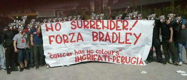 La storia di Bradley arriva in Serie B. Striscione dei tifosi del Perugia: “Non mollare!”