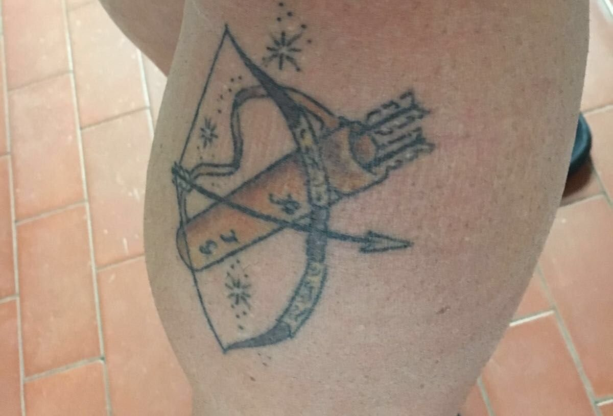 “Tutti mi chiamano l’Arciere – racconta Emanuele Calaiò ai microfoni di GianlucaDiMarzio.com – chissà se se lo ricordano il mio nome (ride). Una sera ero a cena con gli amici a Napoli, ero ancora molto giovane e cercavo un nuovo modo di esultare per non imitare i soliti gesti: il ‘ciuccio’ o ‘la mano alle orecchie’. Cercavo qualcosa di mio, di originale. E allora ecco l’idea: dopo ogni gol andrò sotto la curva ad esultare con i miei tifosi. Ma anche qui non la solita esultanza! Dovrò colpire il loro cuore con una freccia per farli innamorare. Oramai l’arco e le frecce sono entrate anche nel mio di cuore, anzi nel polpaccio per la precisione! Infatti me li sono tatuati e ogni freccia ha l’iniziale di mia moglie e dei miei figli”.
