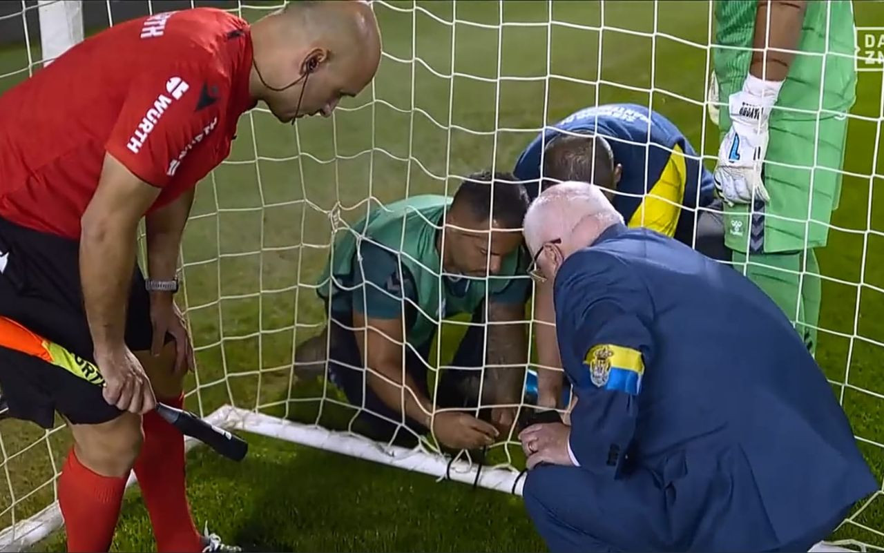 Il buco è stato ricucito dagli operatori del Las Palmas e si è giocato poi il secondo tempo della partita. Il giudice sportivo dovrà poi pronunciarsi sul caso perchè si è giocata una parte del match con la rete di una porta bucata.