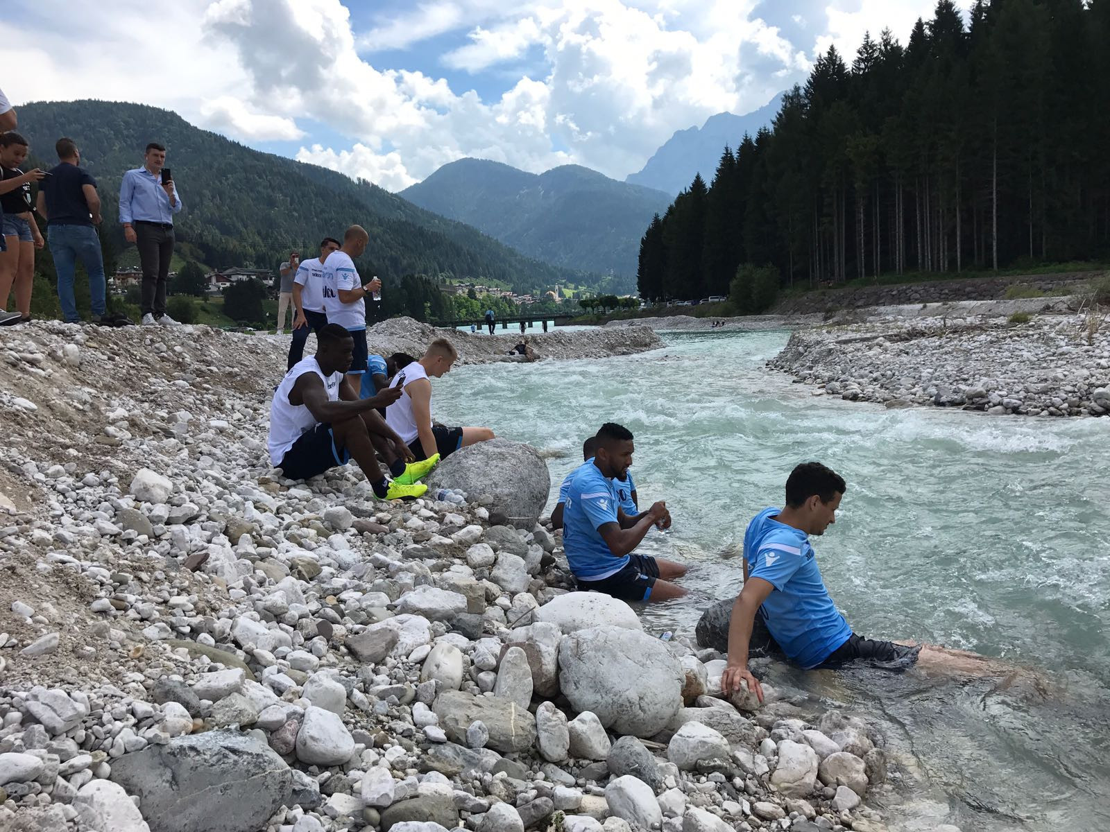 Prima il dovere, poi… il piacere. E un po’ di relax per i calciatori della Lazio: dopo l’allenamento mattutino un “bagno” nel fiume ad Auronzo di Cadore. Sfilano i giovani: Adamonis, Luiz Felipe, Guerrieri, Crecco e Palombi. Infine Wallace, Lukaku, Felipe Anderson, Hoedt, de Vrij, Bastos, Marusic (il nuovo acquisto) e Milinkovic-Savic, star del ritiro. È lui il più cercato per un selfie o qualche autografo. Lui, di contro, è sempre disponibile. Dopo la grande stagione dell’anno scorso ha conquistato tutti. Sorrisi, battute e… un bagno al lago per rinfrescarsi insieme al suo amico Marusic. Tutte le immagini.