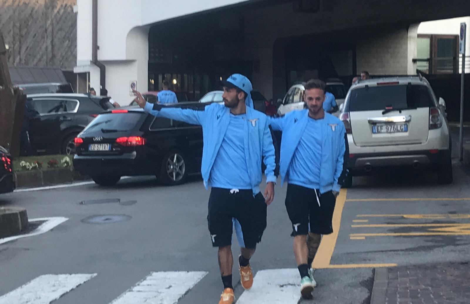 I giocatori hanno lasciato l’albergo verso le 8 sommersi dai tifosi presenti, autografi e selfie. Tutto nasce da un’idea di Lotito. C’è anche Adam Marusic, tornato ad Auronzo dopo i controlli con un vistoso tutore alla gamba sinistra.