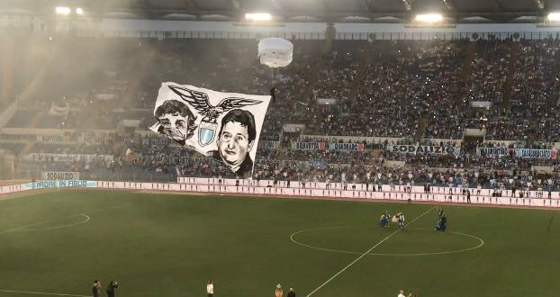 Sui maxischermi tra l’altro, mentre un tris di paracadutisti scendono dal cielo sul prato dell’Olimpico con le immagini di Sandri e Paparelli, sfilano le istantanee di una vita, la storia della Lazio con un soundtrack speciale e coinvolgente: Maestrelli, Nesta, il gol di Simeone alla Juve, l’ultima Supercoppa vinta, Gascoigne, le vittorie nei derby e lo Scudetto del 2000, dove c’era anche un ragazzino col 21.