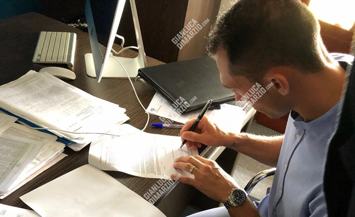 Il calciatore, accompagnato dal suo agente Gabriele La Manna ha così messo nero su bianco l’accordo con la Lazio raggiunto nei giorni scorsi. Ecco la foto della firma di Proto: