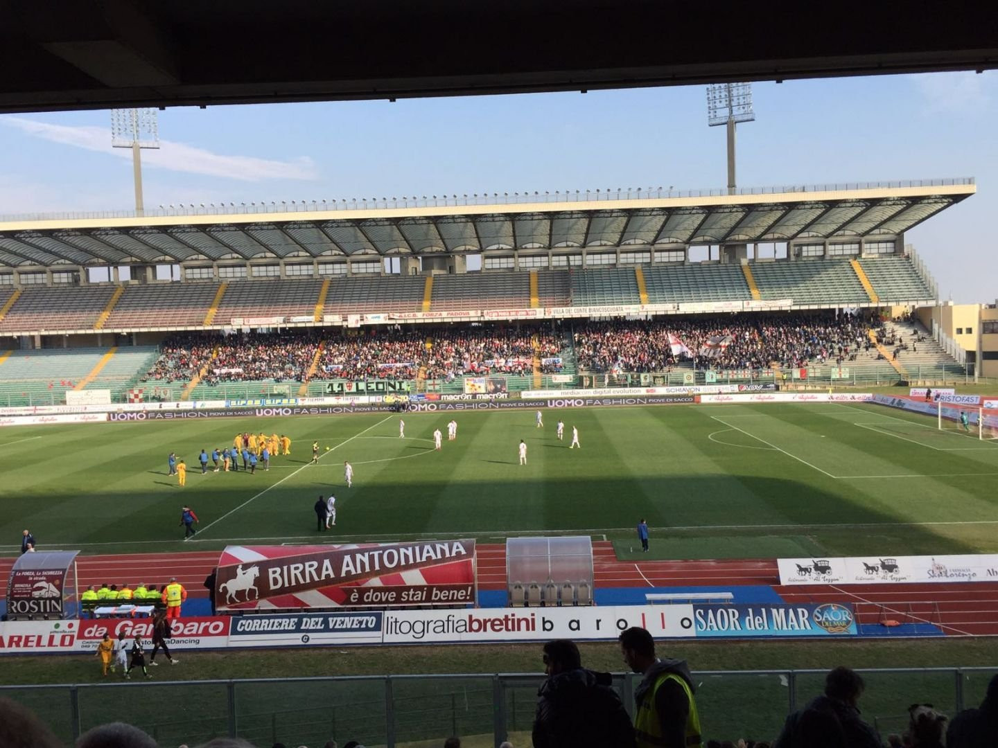 “N’demo che ghe xe el… derbi!”. Un po’ italiano un po’ spagnolo, ma di dialetto veneto si tratta, inconfondibile: Padova-Cittadella. E la prospettiva è di quelle invitanti per un girone di Lega Pro tutt’altro che banale: provincia (Cittadella comune di Padova, appena 20 mila abitanti) che sfida la città da prima in classifica, Cittadella di Venturato ammazza campionato e sempre più in volata verso la Serie B. Ma oggi è derby e l’atmosfera è di quelle che lasciano senza fiato, uniche nel suo genere: e Padova ancora imbattuto da quando c’è Bepi Pillon in panchina. Aspirazioni play-off. La Fattori canta: “Forsa Padova, vinci per noi”. Ma la capolista non vuole abbassare la cresta e dimostrarsi provincia… solo a parole. In tribuna all’Euganeo anche il ds del Cesena Foschi – direttore sportivo del Padova di El Shaarawy e Perin, qualche anno fa prima del fallimento – per lui è un grande ritorno, la sua prima volta all’Euganeo dall’addio.