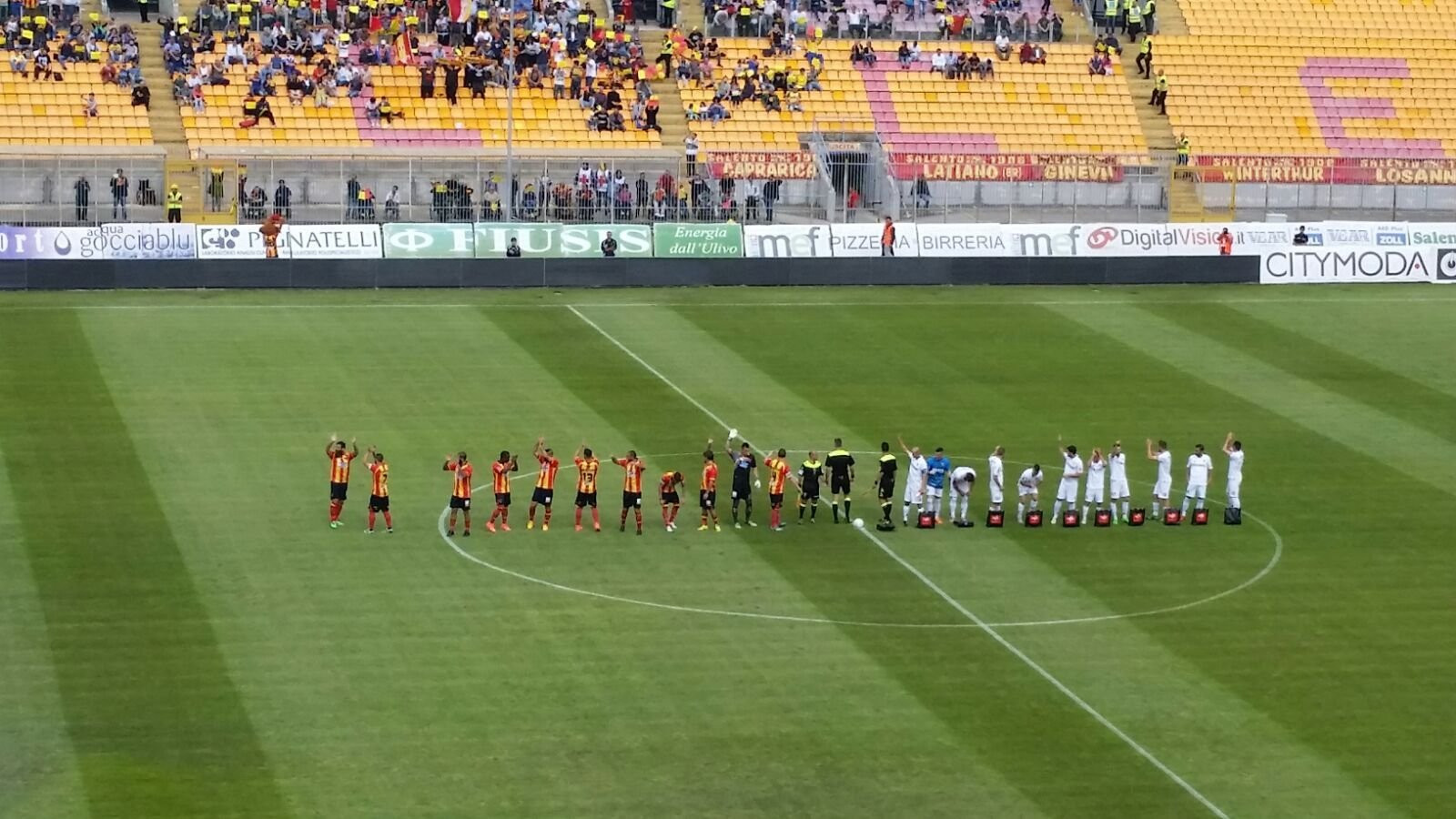 Più di 9.000 spettatori, due squadre con gli stessi colori e un obiettivo comune: la Serie B. Lecce e Bassano Virtus hanno dato battaglia al primo quarto di finale playoff di Lega Pro in scena al ‘Via del Mare’. A spuntarla sono stati i giallorossi di Braglia nonostante un inizio di gara ordinata della squadra veneta. La svolta del match arriva dopo dieci giri di lancette: l’ex Livorno Surraco, lanciato a rete da Papini, viene steso in area da Rossi e per l’arbitro Baroni non ci sono dubbi: rigore per il Lecce ed espulsione dell’estremo difensore bassanese. Dal dischetto Davide Moscardelli non sbaglia e firma il vantaggio salentino. Per l’attaccante classe ’80 si tratta dell’undicesimo centro stagionale. Mosca-gol ma non sono gol perché durante l’arco del match dispensa giocate da fuoriclasse incantando tifosi e addetti ai lavori sfiorando in più occasioni la doppietta. La squadra di Sottili si vede a sprazzi e pericoli in zona Perucchini non ce ne sono. Più impegnativo il pomeriggio del collega Davide Costa, portiere classe ’96 in prestito dall’Inter: entra in campo dopo il rosso a Rossi e a inizio ripresa riesce a sventare le conclusioni di Moscardelli prima, di Papini poi. Non può nulla, però, sul destro fulminante di Stefano Salvi che infila il pallone all’incrocio dei pali per il raddoppio del Lecce. Il Bassano di Sottili prova a reagire con un’incursione di Piscitella ma sulla sua strada trova un attento Perucchini. Nel recupero c’è gloria anche per il neoentrato Caturano che, servito da Moscardelli, deposita in rete la palla del definitivo 3-0. Che bella scena a fine partita: è Perucchini, portiere del Lecce, che va ad abbracciare il portiere avversario Costa, in lacrime per la sconfitta. A sorridere, invece, è il Lecce che vola in semifinale playoff dove affronterà la vincente di Foggia-Alessandria.
