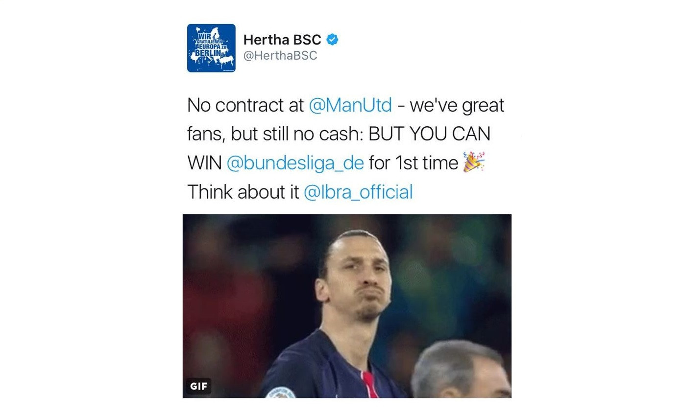 palla. Nonostante questo il Manchester United non gli rinnoverà il contratto, così ci ha provato l’Hertha Berlino, tramite un Tweet ironico, a