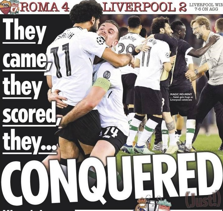 Apre così la stampa inglese sulla vittoria dei Reds sulla Roma di ieri sera,