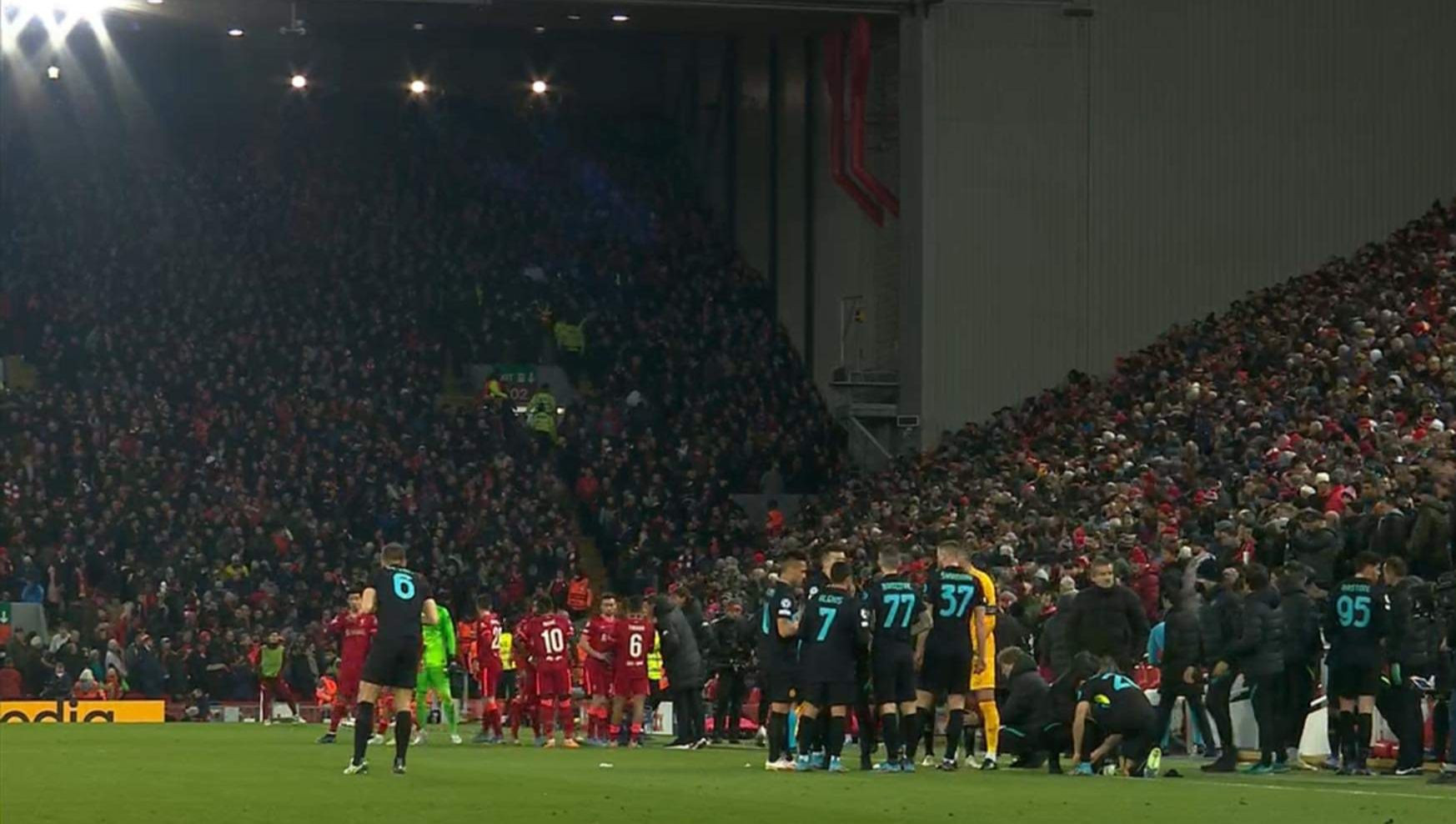 La partita è stata sospesa a causa di un malore di un tifoso del Liverpool nella Cop. Sia Klopp che i componenti della panchina dei reds hanno subito spiegato l’accaduto al quarto uomo e all’arbitro per interrompere la partita. Per il sostenitore del Liverpool si sarebbe trattato di un arresto cardiaco ed è stato subito soccorso dai medici. La partita è poi ripresa dopo circa tre minuti, con le condizioni del tifoso che sono in ripresa.