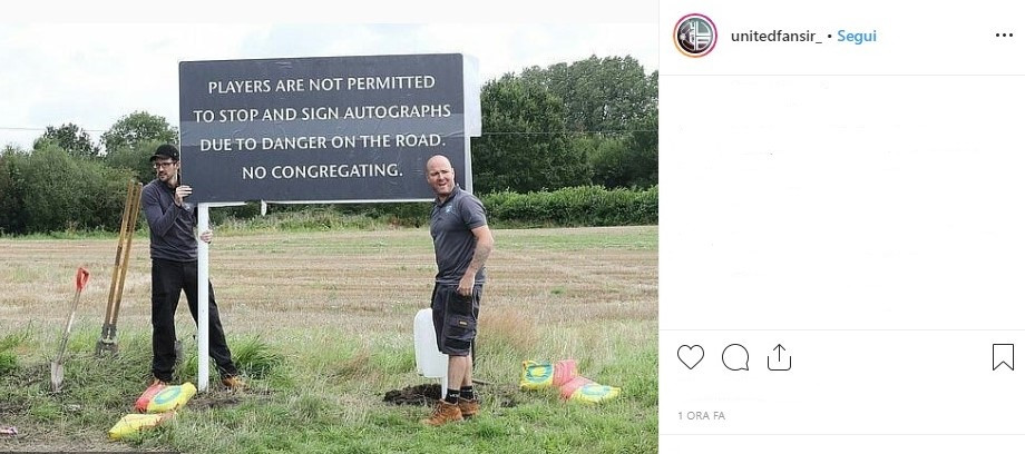 Come riportato dalla stampa locale, è stato messo un cartello che vieta la sosta delle macchine di giocatori e staff dello United e viene impedito ai tifosi di restare in strada per bloccare le auto: "Ai calciatori non è permesso fermarsi e firmare autografi a causa di pericoli in strada".