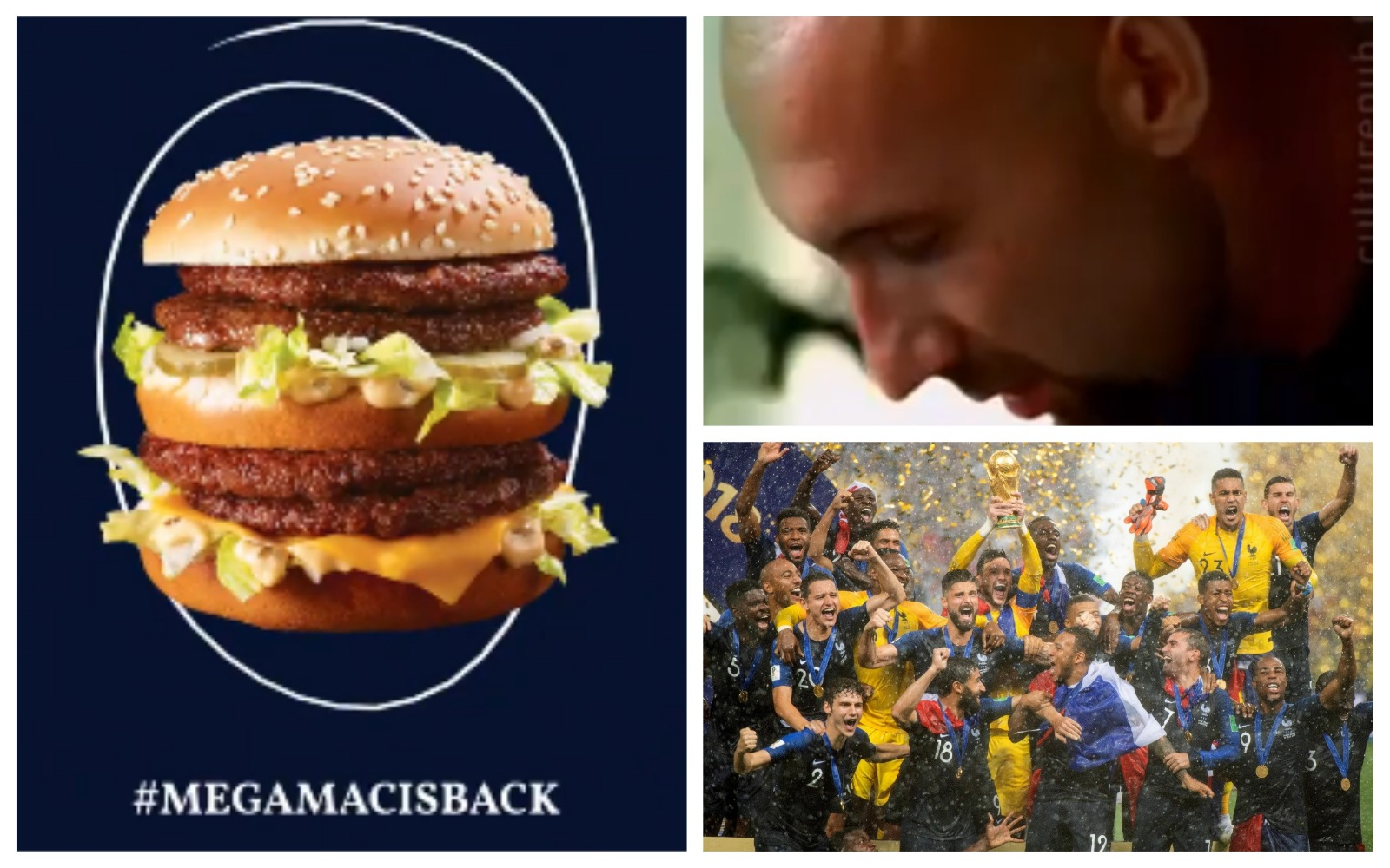 La Francia sull’onda dell’entusiasmo, a pochi mesi di distanza, continua a gioire e festeggiare per la vittoria della Coppa del Mondo in Russia e questa volta a celebrare M’Bappé e compagni ci ha pensato… Mc Donald’s Francia. Come? Dobbiamo tornare un pochino indietro nel tempo esattamente a 20 anni fa quando la Francia di Zidane si laurea campione del Mondo per la prima volta nella sua storia. Era il 1998 e Mc Donald’s il 30 settembre di quell’anno decise di celebrare quei campioni con un nuovo panino: Le Mega Mac (la versione francese del nostro Big Mac). I più nostalgici ricorderanno questa pubblicità con Barthez protagonista…