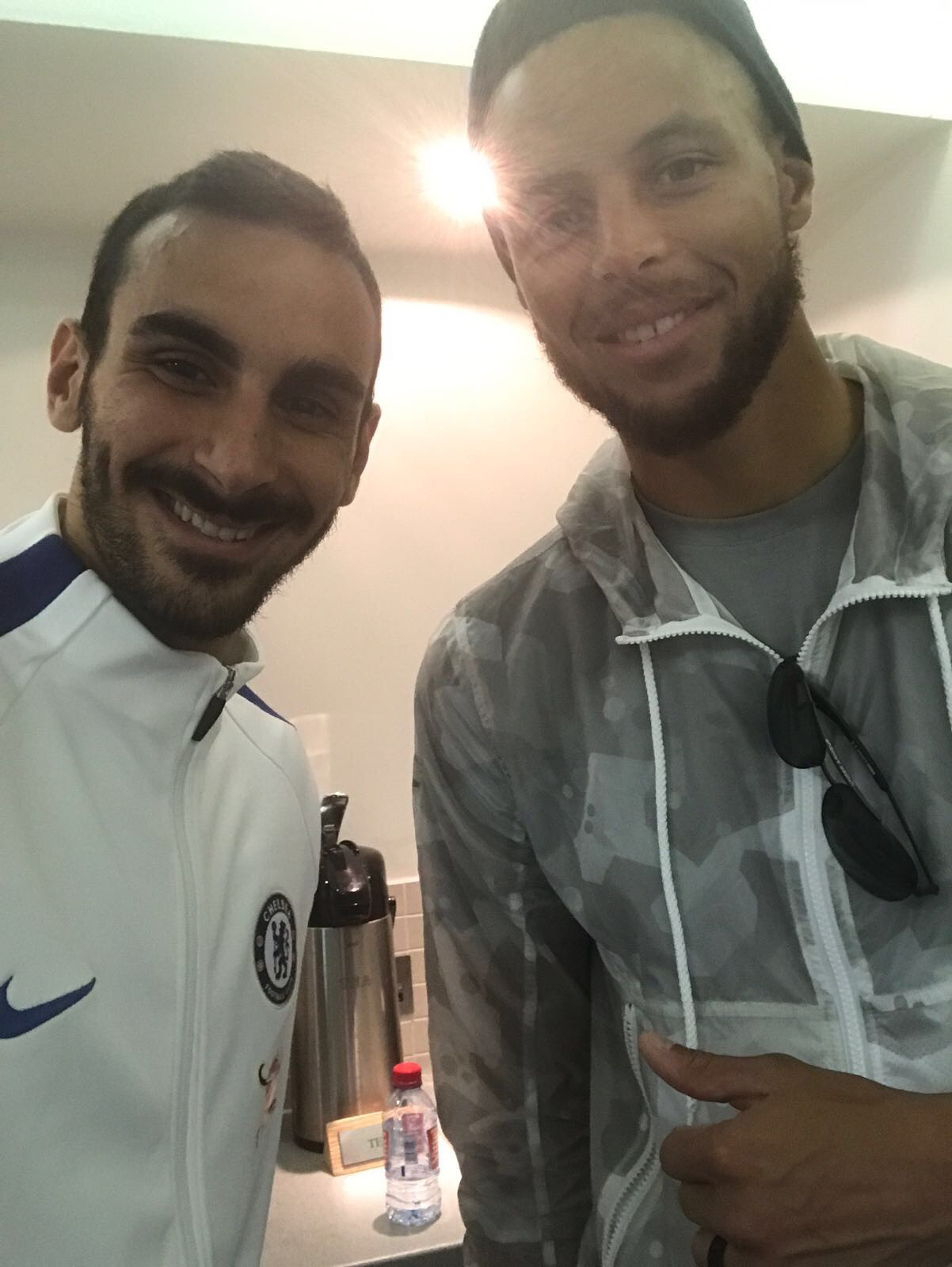 “Mia mamma giocava a basket, mio fratello pure, io invece faccio un selfie con Steph Curry”. Parola di Davide Zappacosta, che al Chelsea sta vivendo settimane di forti emozioni. Dopo l’esordio con gol (da paura) in Champions League ieri ha incontrato un idolo… familiare. Si tratta del numero trenta dei Golden State Warriors Steph Curry, la stella assoluta della West Coast, che in questi anni si sta contendendo il trono di numero uno con il “The Chosen” LeBron James. Ma Curry non è solamente un idolo per Zappacosta, ma anche per la sua famiglia. Infatti sia la mamma che il fratello dell’ex difensore del Torino hanno giocato a basket in passato e questo ha reso ancora più speciale l’incontro con il giocatore Nba, come ha sottolineato Zappacosta su Twitter. Ecco la foto: