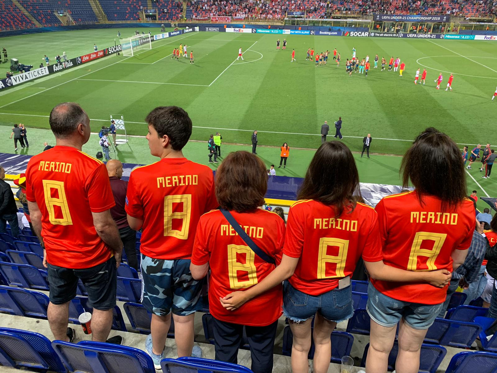 Girando per gli stadi in cui la Spagna ha affrontato la fase a gironi era quasi impossibile non notare tutta la sua “banda”. Cinque maglie della Spagna in fila, tutte con il numero 8 e il nome di Merino sulle spalle. Sempre in tribuna, dall’esordio con l’Italia al torrido caldo di Reggio Emilia fino alla gara conclusiva del girone di nuovo al Dall’Ara.