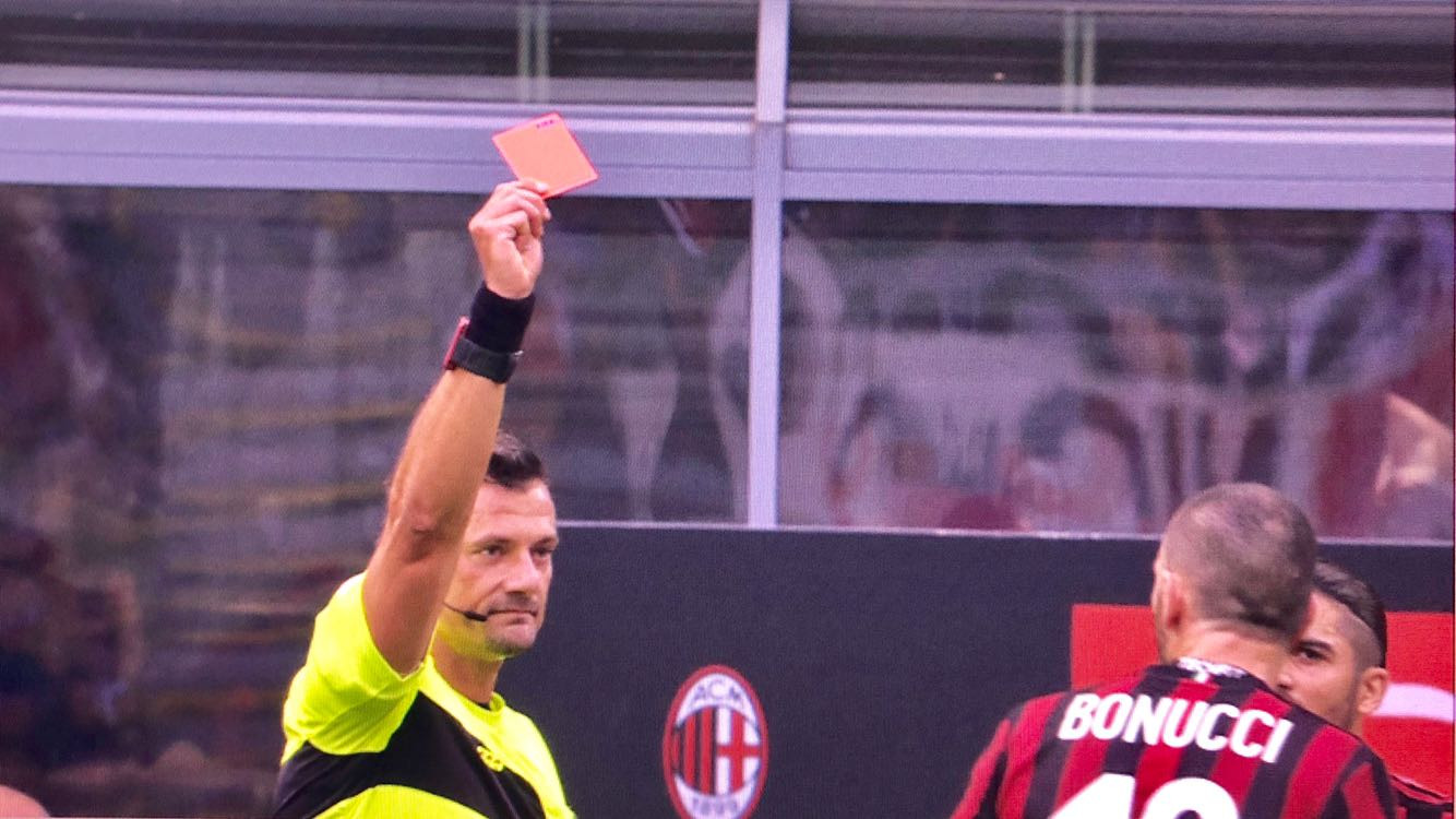 Non è la prima volta che viene presa la decisione di espellere direttamente un calciatore con l’ausilio del Var: in passato, infatti, hanno ricevuto un rosso diretto Bertolacci per un fallo su Lasagna in Udinese-Genoa e Ceccherini (che inizialmente era stato solo ammonito) per un fallo da rigore in Crotone-Milan. Nel caso di Bonucci, prima del ricorso al Var, era stato soltanto fischiato il fallo ma l’arbitro non aveva estratto il cartellino giallo.