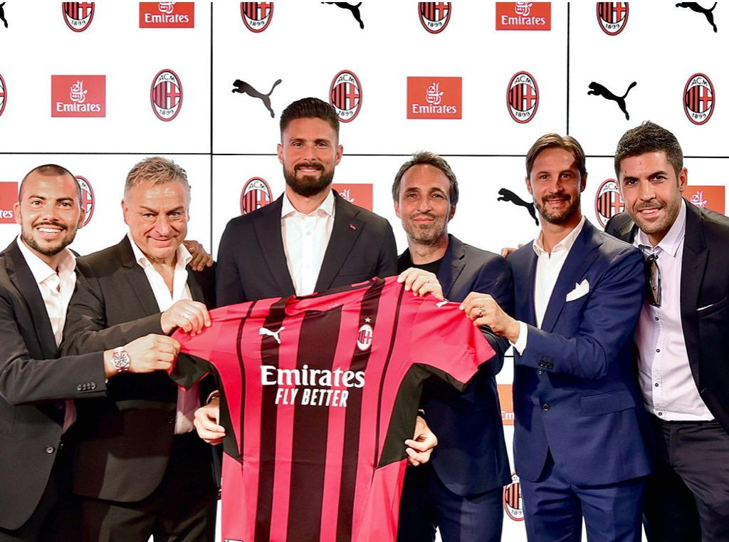 Olivier Giroud è stato ufficializzato oggi dal Milan. Nel corso della sua presentazione ha posato con l’agente Manuello e gli intermediari dell’operazione Vincenzo Morabito, Luca Antonini e Giampaolo Marcheggiani.