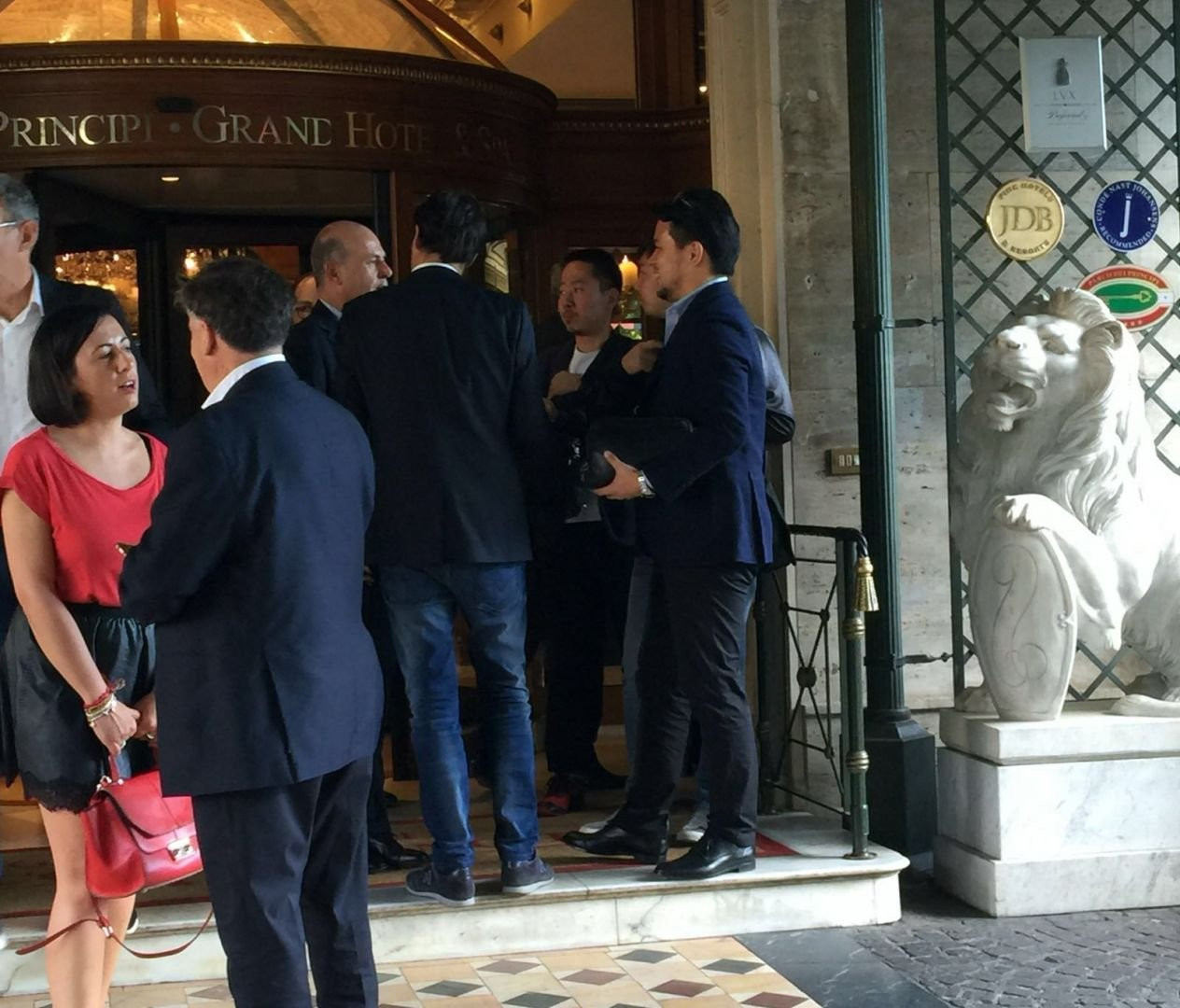 Futuro del Milan ancora incerto, dopo la finale di Coppa Italia probabilmente se ne saprà di più. Incerto come quello di Keisuke Honda, giapponese classe ’86 con il contratto in scadenza a giugno 2017. Come riferito da Peppe Di Stefano di Sky Sport, oggi al Parco dei Principi (l’hotel dove alloggia il Milan a Roma) c’è stata la visita del fratello e agente del giocatore, Hiro Honda, nella foto con Umberto Gandini, Fabrizio De Vecchi, che lavora con Hiro e il fisioterapista del giapponese.