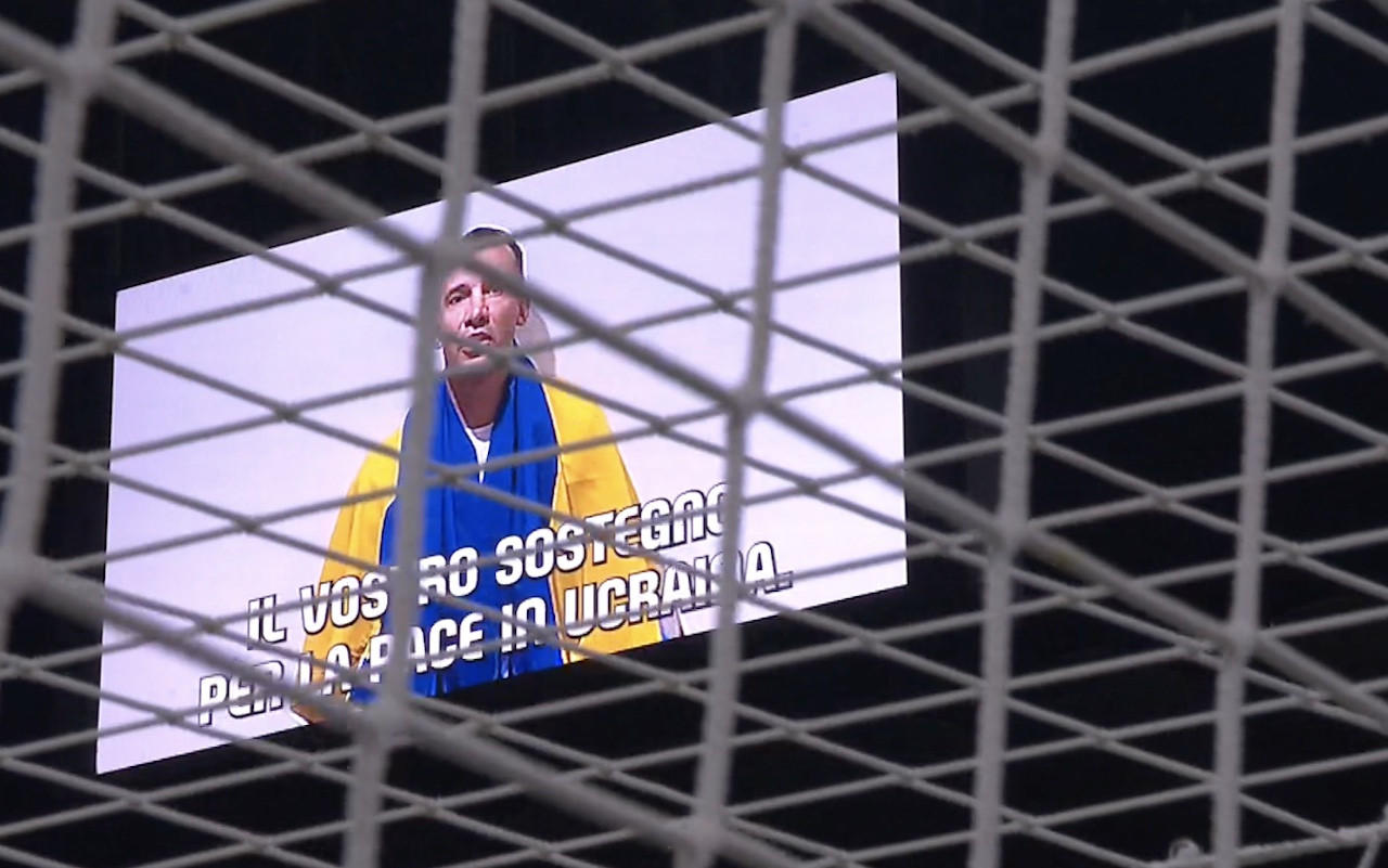 “Cari amici italiani, da San Siro vi chiedo di far sentire forte il vostro sostegno per la Pace in Ucraina. Il popolo Ucraino vuole pace. Perché la Pace non ha confini. Perché ciò che ci unisce deve essere più forte di ciò che ci divide. Fermiamo insieme questa guerra. Un abbraccio a tutti”.