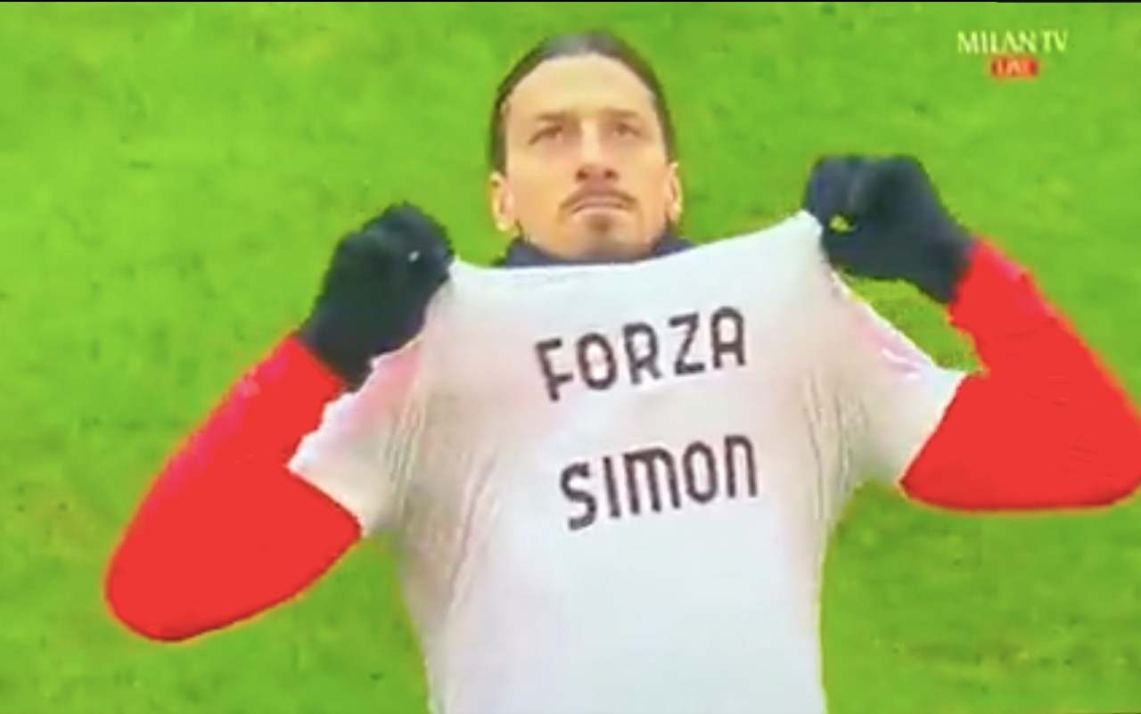 Queste le foto caricate dalla pagina ufficiale del Milan sull’account Twitter: “Forza Simon”, “Siamo tutti con te”.