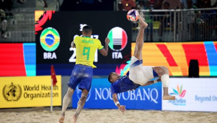 Zurlo e compagni, sulla sabbia della Paradise Arena gremita di tifosi per uno degli incontri certamente più affascinanti del beach soccer mondiale, sono stati protagonisti di un testa a testa alla pari contro i verdeoro, passati al definitivo vantaggio nei minuti finali della sfida e trascinati da un cinico Mauricinho premiato come player of the match.
