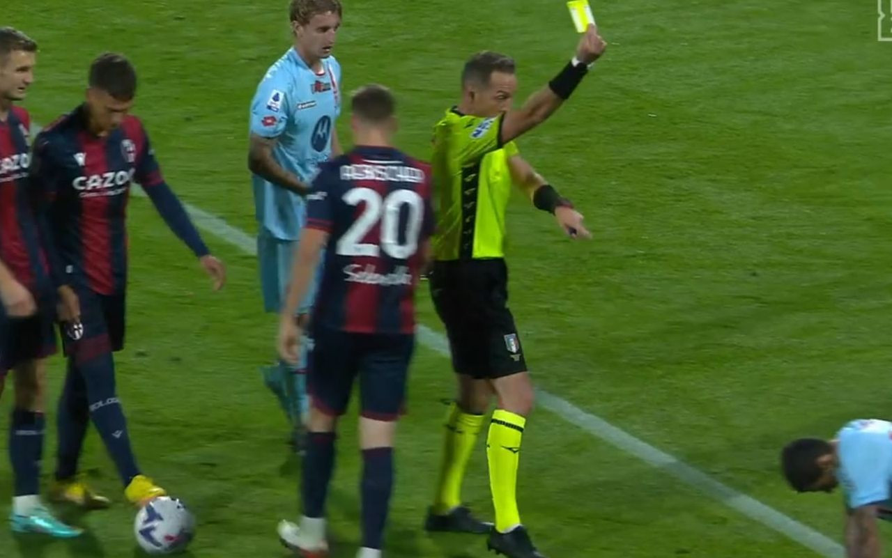 Nessun errore, Pairetto ha ammonito Sensi per un fallo commesso dall’ex Inter nell’azione precedente. In quel momento l’arbitro aveva lasciato correre perché il Bologna aveva mantenuto il possesso del pallone. Una volta fischiato il calcio di rigore, però, il gioco è stato interrotto e Pairetto ha potuto ammonire Sensi.