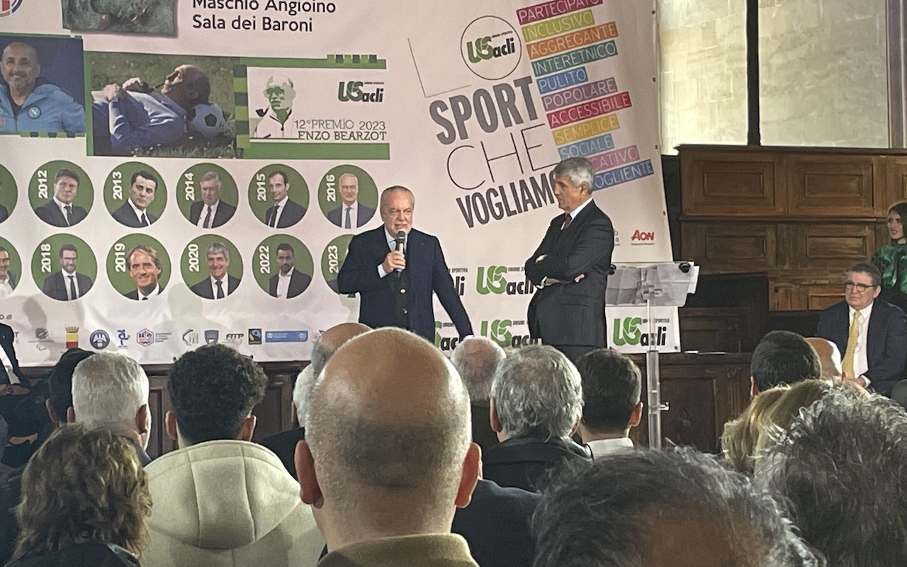 Il patron del Napoli ha poi parlato del personaggio del giorno, Luciano Spalletti: “Sono davvero felice per la vittoria del premio per Luciano Spalletti, è stata una felice intuizione. Io già contattai Spalletti prima del suo ritorno a Roma, poiché Gattuso non si sentiva più bene. Andai da lui al Bosco Verticale, a Milano, ma all’epoca mi disse di non poter venire: mi disse «Non adesso, a giugno vengo». Ho fatto di tutto per depistare tutti voi (giornalisti, ndr): passai prima per Conceicaio, poi passai anche per un altro allenatore italiano che venne anche a darmi quattro lezione di calcio nei miei uffici (Allegri, ndr). Alla fine, però, è arrivato lui, il grande Luciano”.