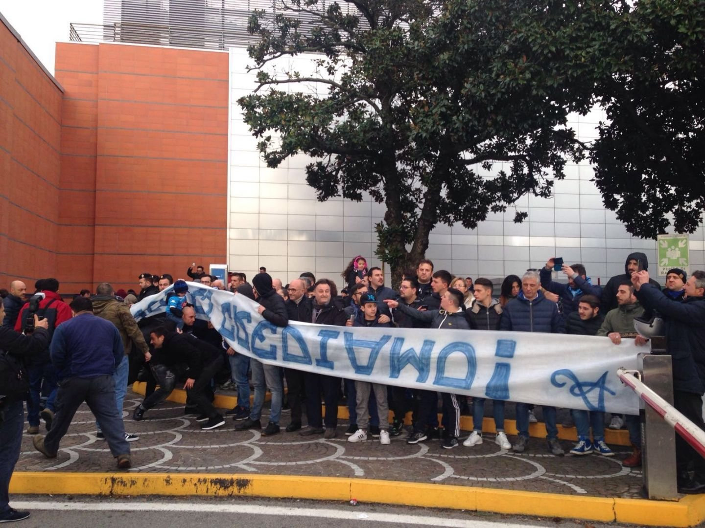 Il grande giorno di Juventus-Napoli è arrivato. E’ stata una settimana di attesa, ma stasera finalmente si va in campo. I tifosi del Napoli, che non saranno presenti nel settore ospiti dello Juventus Stadium, hanno voluto far sentire il proprio calore alla squadra aspettandola davanti all’hotel sede del ritiro degli azzurri. All’arrivo del pullman, tra i più acclamati ci sono stati ovviamente Higuain e Insigne, ma anche Sarri. La richiesta dei tifosi è facile da immaginare: “Vincere”. I tifosi hanno accolto anche Aurelio De Laurentiis: il presidente infatti è al seguito della squadra ma non ha parlato. Per lui solo sorrisi e saluti, per stemperare la tensione, tanta, che accompagnerà lui e la squadra fino al fischio d’inizio.