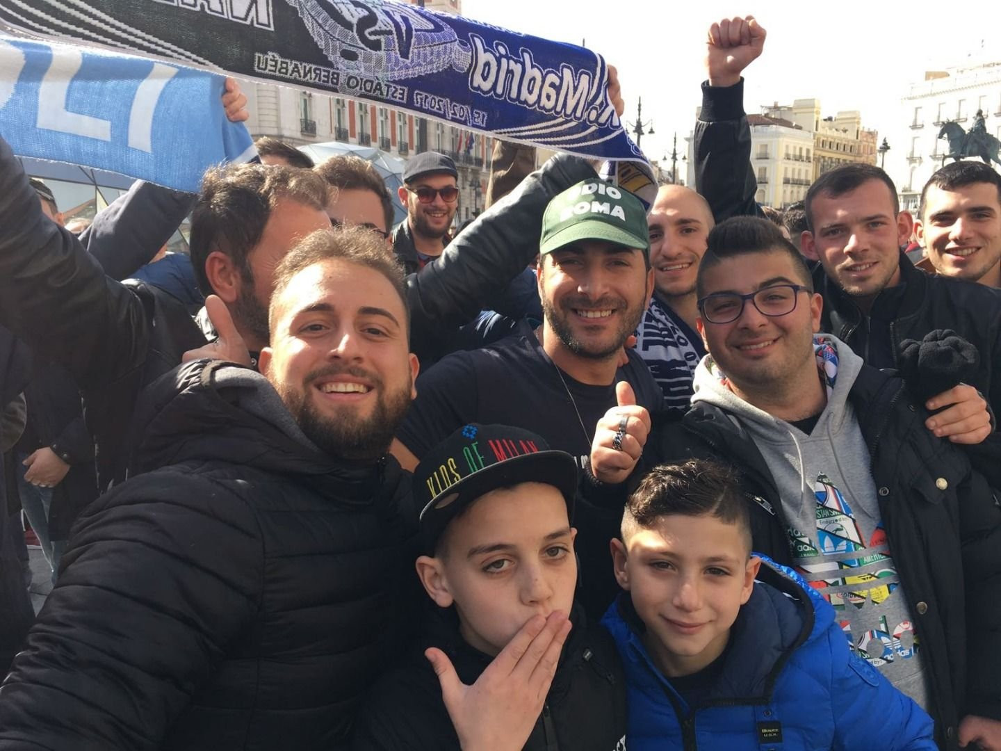 E’ scoccato il count-down: il Napoli è giunto ieri a Madrid e tra qualche ora sbarcherà allo stadio Bernabeu per affrontare i campioni in carica del Real di Zidane nell’andata degli ottavi di finale di Champions. Intanto il centro di Madrid nelle giornata di oggi si è coperto di azzurro, con una marea di tifosi napoletani che hanno preso d’assalto le vie della capitale spagnole. Ecco la nostra fotogallery: