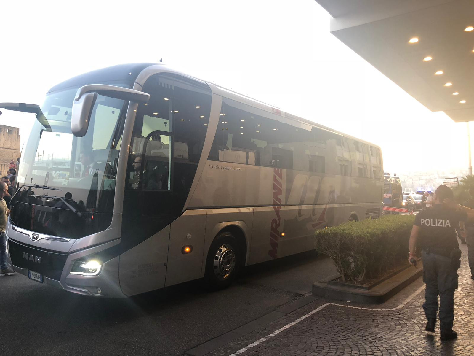 Tanti cuoriosi hanno affollato dalle prime ore del pomeriggio l’esterno dell’Hotel Vesuvio per scorgere i campioni d’Europa salire sul pullman che li condurrà al San Paolo. Da Van Dijk a Salah, passando per Klopp e lo staff tecnico. Il Liverpool è partito alla volta di Fuorigrotta, ad attenderlo un San Paolo gremito per l’occasione. Dal lungomare allo stadio, Napoli-Liverpool è già cominciata.