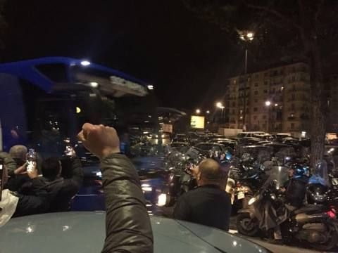Lo stadio ribolle, si riempie sempre più. Il tempo passa, la voglia sale. E il Napoli arriva allo stadio. Il pullman azzurro entra in questo momento al San Paolo. L’urlo ‘The Champions’ è stato più volte riprovato. I decibel si alzano e la febbre segna il picco. Manca pochissimo. È tempo di Napoli-Real Madrid.
