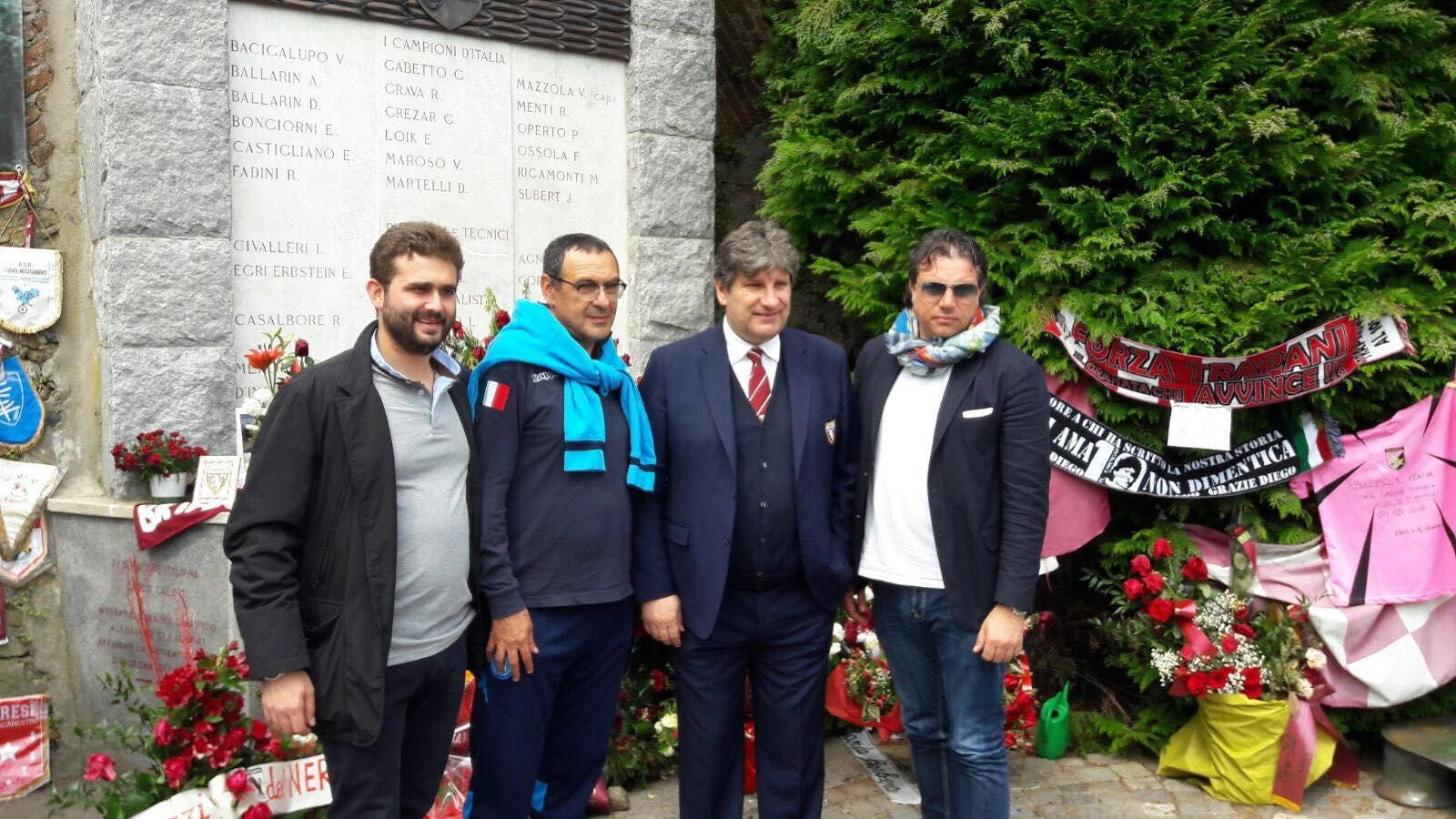 Trentuno rose per il Grande Torino. Per gli Invincibili, a poco più di sessantasette anni dalla tragedia di Superga. Il Napoli, prima del match di stasera contro il Torino, ha fatto visita al Santuario di Superga, per rendere omaggio ad una delle squadre più forti della storia del calcio. Maurizio Sarri, Cristiano Giuntoli e il vicepresidente Edo De Laurentiis si sono recati sulla lapide del Grande Torino, nella settimana dell’anniversario. L’allenatore azzurro già l’aveva fatto l’anno scorso all’Empoli, quest’anno ha voluto ripetersi. Ecco la fotogallery: