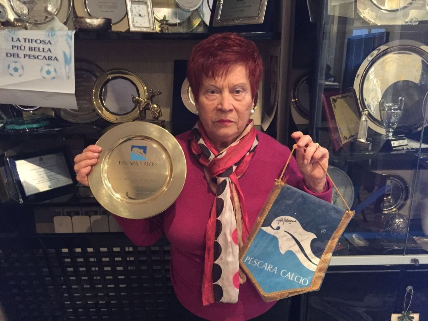 Non è difficile immaginare come mai sia stata scelta lei come presidentessa dell’Anfissc, ovvero l’associazione di tutte le tifose donne italiane. Ambasciatrice senza posa che da quasi 40 anni si fa portatrice di valori e amicizia sportiva. Con i colori del Pescara, ed un tocco di rosa.
