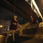 Roma, manichini dei giocatori appesi avanti al Colosseo