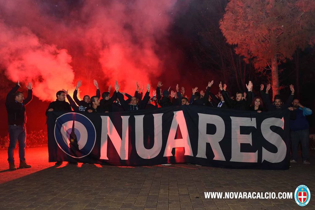 Domani ci sarà il derby tra Novara e Pro Vercelli, ma per i tifosi biancoblu la partita è già iniziata. I sostenitori della squadra di Corini si sono ritrovati a Novarello dove la squadra è in ritiro, per sostenere i giocatori e caricarli in vista della partita. Cori, fumogeni e striscioni per dimostrare il loro sostegno. Domani toccherà ai giocatori, ma oggi i protagonisti sono stati i tifosi. Ecco le immagini…