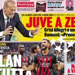 Prime Pagine: “Juve a zero, Milan a tutta, Napoli a valanga”;”Juve fuori gioco”