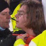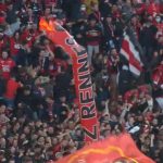 Rennes-Leicester, crolla una balaustra dopo il gol di Bourigeaud