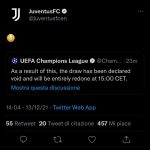 Champions League, annullato il sorteggio delle 12: cosa è successo