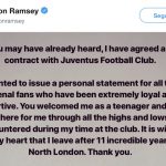 Ramsey: “Grazie Arsenal, fino a giugno darò tutto me stesso”