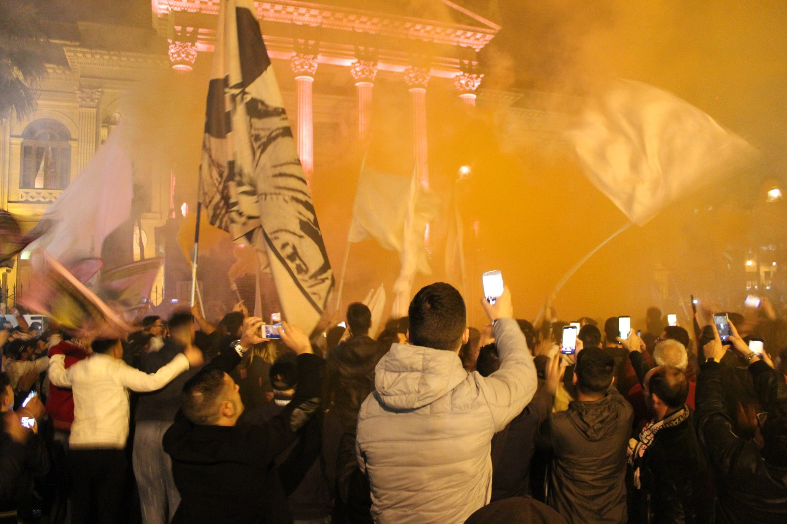 Circa 1500 tifosi rosanero questa sera hanno preso parte alla manifestazione organizzata in Piazza Verdi dal gruppo Curva Nord 12. Un appuntamento per dare un segno di vicinanza alla squadra e protestare contro le istituzioni. "Palermo merita rispetto" e "Sentenza pilotata" recitano due striscioni esposti dagli ultras che hanno messo nel mirino il presidente della Lega B Mauro Balata ed il patron della Salernitana Claudio Lotito, ritenuto l'artefice della decisione presa dal Consiglio Direttivo di Lega B di rendere subito esecutiva la sentenza del TFN.