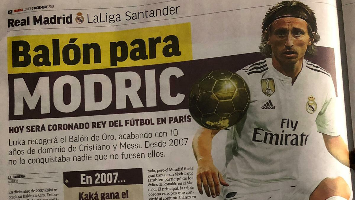 Stasera andrà in scena a Parigi la cerimonia ufficiale per l’assegnazione del Pallone d’Oro. Dalla Spagna sono sicurissimi: sarà il croato Luka Modric a vincerlo. Tutti i giornali spagnoli celebrano già la vittoria del centrocampista del Real Madrid che interrompe il duopolio decennale di Messi e Ronaldo. Quotidiani come AS danno anche i dettagli: Luka sta viaggiando in queste ore verso Parigi per prendersi il Pallone D’oro insieme a Florentino Perez, Sergio Ramos, Raul e Roberto Carlos. Una delegazione di tutto rispetto che incarna perfettamente i valori del “madridismo”.