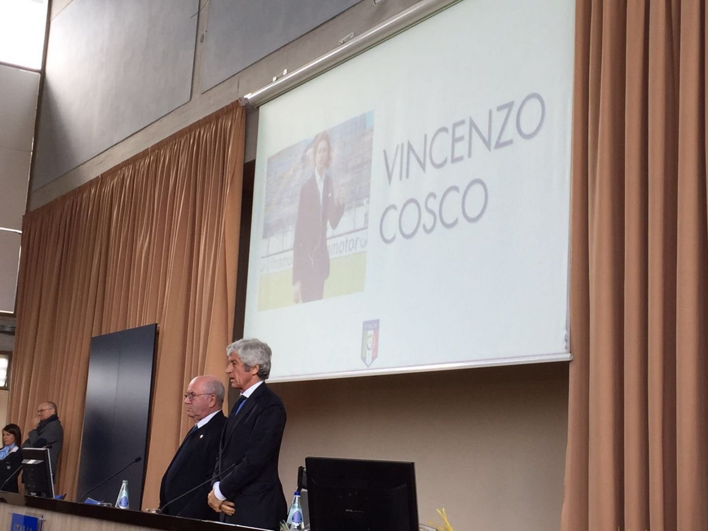 Da qualche minuto è iniziata la cerimonia per la consegna della Panchina d’Oro, riconoscimento che viene assegnato al miglior allenatore della stagione precedente. In apertura c’è stato un momento molto emozionante in ricordo di Vincenzo Cosco, allenatore tra le altre di Fidelis Andria, Matera e Torres che è morto nel mese di maggio del 2015. Minuto di silenzio e targa consegnata alla moglie e al figlio di Cosco, un momento che ha commosso tutti gli allenatori presenti in sala. A breve verranno comunicati i vincitori della Panchina d’Oro e della Panchina d’Argento.