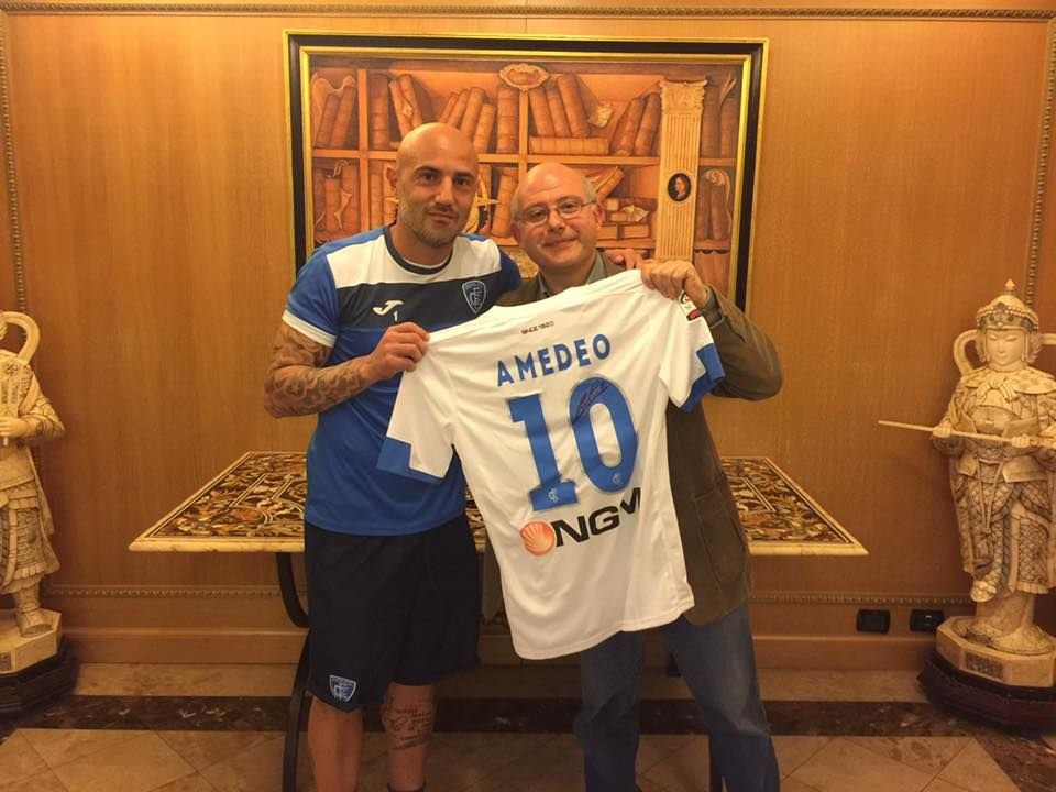 Nel cuore di Roma c’è un cuore che batte… e che tifa Empoli. Storia più unica che rara, racconto che non poteva che uscire da un luogo così magico: una libreria che è quasi un museo, dove sugli scaffali non c’è più posto ed i libri diventano mobili o pareti. Qui, a due passi dal Pantheon, la libreria Cesaretti va avanti da cinque generazioni della famiglia Lefevre. Amedeo, 40 anni, ha seguito le orme del padre… professionali però, perché il calcio è un’altra cosa. A sei anni, la mano di papà Saverio lo portò all’Olimpico: c’era Roma-Empoli, Coppa Italia 1983. Finì 0-0 e doveva essere il rito di iniziazione di Amedeo nel tifo giallorosso, ma il cuore batteva già per un’altra. Non era un tradimento, semplice colpo di fulmine per l’azzurro. Quello dell’Empoli, squadra di cui di colpo si innamorò.