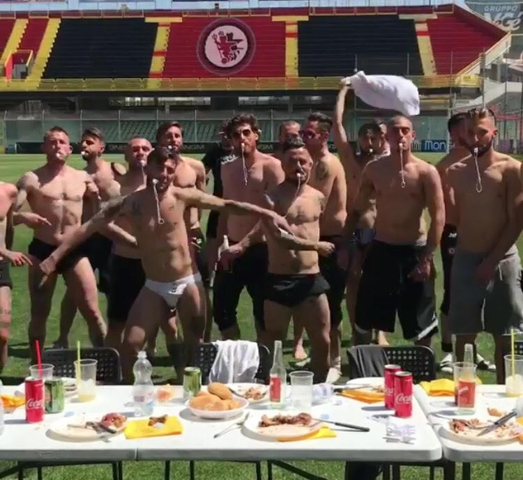 Se una squadra ha appena vinto il campionato, il pranzo “in famiglia” è quasi di rigore. La particolarità, casomai, sta nel fatto che per l’occasione non si è scelto il miglior ristorante della zona. Ma il prato verde dello stadio Zaccheria. È in questa singolare location che il Foggia ha scelto di dare vita ad una sorta di “pasquetta” posticipata. Seduti al tavolo tutti i giocatori rossoneri che si sono esibiti nella Papu-dance, il tormentone ideato dal giocatore atalantino che sta impazzando sul web. Sono stati i calciatori, capeggiati dal capitano Cristian Agnelli, a dare vita all’idea nata nei giorni scorsi. Hanno invitato a pranzo tutto lo staff. Menù brasiliano, con piatti preparati da un cuoco carioca contattato direttamente dalla squadra. Cocktail di Caipirinha. Pare sia ritornata utile anche per qualche gavettone.