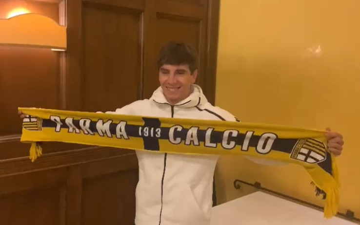 Sorrisi, foto di rito con la sciarpa e un “forza Parma” a suggellare l’inizio della nuova avventura per Bernabé che, finora, ha collezionato solo cinque presenze in prima squadra giocando in EFL Cup con il Manchester City.