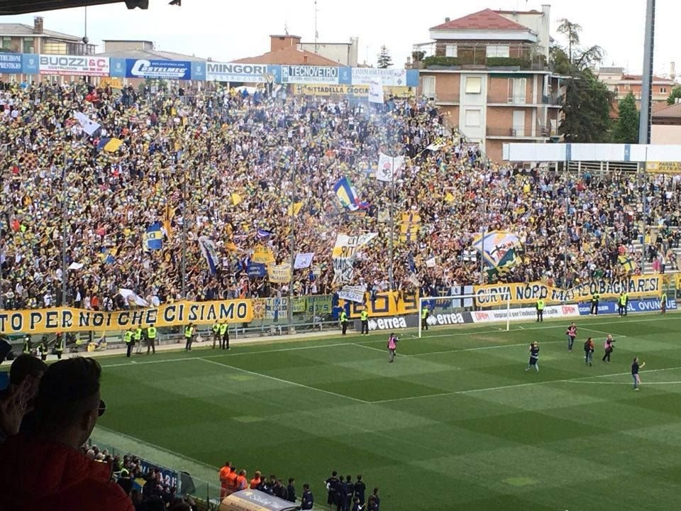 Parma torna a gioire, la rinascita gialloblù è finalmente realtà. La squadra di Apolloni festeggia la promozione in Lega Pro e torna tra i professionisti dopo solo un anno. Prima Guazzo, poi il rigore di Corapi: 2-1 al Delta Rovigo e festa che può cominciare dopo un campionato assolutamente dominato. ‘Tardini’ in delirio, 20 mila tifosi totalmente impazziti di gioia. Un anno fa il fallimento, oggi la Lega Pro: l’inferno della Serie D è ormai il passato. “E non finisCe qui” recita la maglia del simbolo indiscusso di questa risalita, quell’Alessandro Lucarelli capitano indomito, capace di non abbandonare la nave che affondava e combattere per riportarla in alto. Il calcio italiano riabbraccia uno dei club più gloriosi, il Parma può tornare a festeggiare. Qui le foto della festa del ‘Tardini’: