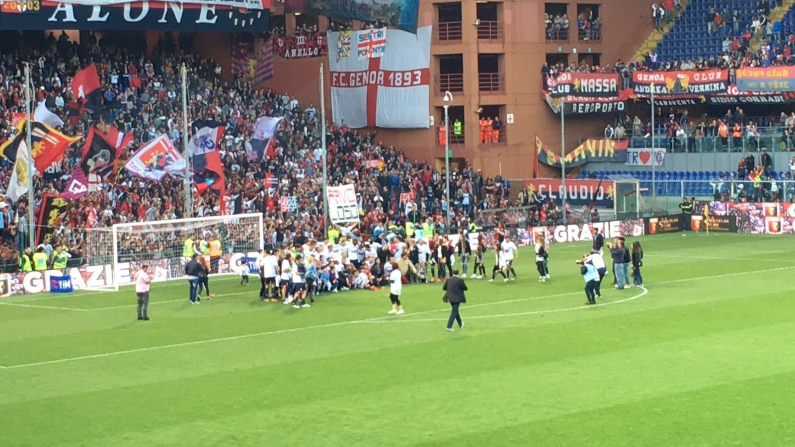 In campo? Di D’Alessandro, del solito Pavol(oso)etti, al quattordicesimo squillo a Conte in venticinque gare, e di Jasmin Kurtic i lampi a fissare il risultato finale sull’1-2. Nel mezzo, due gol annullati al numero diciannove rossoblù per fuorigioco, l’occasione targata El Papu Gomez, la traversa dell’ex Borriello, il gol del possibile vantaggio divorato da Ezequiel Munoz e gli ultimi brividi targati Izzo-Pandev. Non c’è più tempo, fischietto in mano il direttore di gara dice che il campionato del Genoa finisce qui. Passa l’Atalanta, undicesimo posto finale per il Grifone e squadra tutta in campo a salutare la Nord, maglia bianca con la scritta “Grazie” dedicata a tutti i tifosi in dosso. “Gasperini eh eh, Gasperini oh oh” canta tutto lo stadio, mentre l’allenatore guida la squadra nel giro di campo dal sapore di saluti finali braccia al cielo, salutando i tifosi e regalando magliette ad ogni settore. “I grandi amori non finiscono mai. Grazie Gian Piero” il messaggio affidato ad uno striscione nei distinti per salutare il Gasp, capace di scrivere in tanti anni all’ombra della Lanterna molte delle pagine più belle della storia rossoblù. Ora il futuro, tutto da scrivere. Aspettando la prossima entusiasmante stagione a tinte rossoblù.